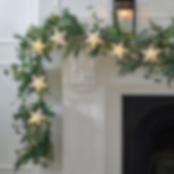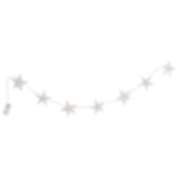 Skapa en magisk julstämning med vår LED-ljusslinga prydd med vita stjärnor i papp. Denna ljusslinga är perfekt för att ge ett varmt och inbjudande sken var du än väljer att placera den. Ljusslingan är 150 cm lång och drivs med 2 x AA-batterier (ingår ej).