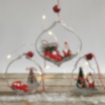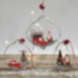 2 st. små bilar i färgerna röd, vit och svart som blir en kul liten detalj att ha med när man ska pynta inför nissens ankomst till semestern eller julen. Bilarna är ca 2 x 4 cm stora.