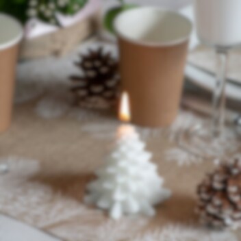Fantastiskt stiligt stearinljus format som en vit julgran. Med sin höjd på 8 cm är detta ljus den perfekta dekorationen för att skapa en mysig och festlig atmosfär till jul. Kombinera med andra färger och storlekar och få till en underbar liten lysande julgranskog.