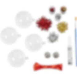Setet innehåller allt du behöver för att dekorera två kulor som gnistrar vackert i julgranen eller som söt dekoration på barnrummet.