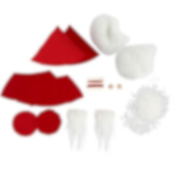 ✔️ Innehåller utstansad röd velour, skägg, träpärlor, polyesterfyllning, plastkulor och tråd