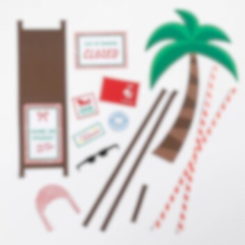 Även nissen behöver en paus ibland! Med detta charmiga mini-pysselkit kan du skapa en liten semesterhörna framför nissens dörr, komplett med strandstol, palm och skyltar som visar att nissen tagit ledigt för lite sol och vila.