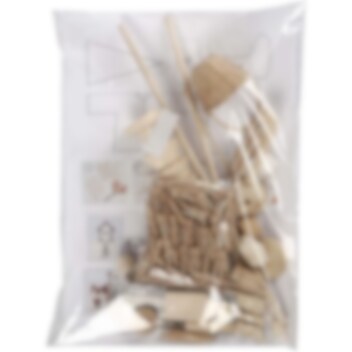 Innehåller: Kälke, skidor, stavar, träskor, stege, julgran, rundstav på fot, korg, redskap, klädnypor, glasspinnar, filt, snöre och dubbelhäftande tejp.