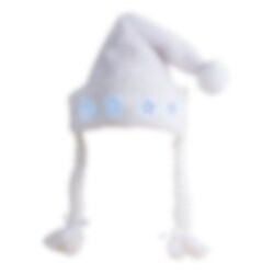 Vit tomteluva med glitter och inbyggda röda LED-ljus. En rolig grej för barnen att på sig när juletiderna närmar sig runt hörnet. Tomteluvan är tillverkad av 100 % polyester och finns i en storlek som passar till de flesta barn. Batteri medföljer.