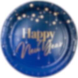 8 st. tallrikar i en mörkblå färg som är lyxigt dekorerade med texten Happy New Year i guldfolie. Tallrikarna är 23 cm i diameter och är tillverkade av papp.