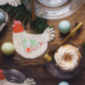 20 st. servetter som föreställer en färgglad höna med guldfolierade detaljer. Servetterna har 3 lager och är 26 x 32 cm stora utvikta.