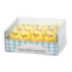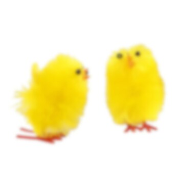 Små påskkycklingar av piprensare med plastben i klassisk gul färg. De är 3 cm höga och superfina att ha på ditt dukade påskbord som en rolig detalj.