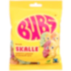 Ingredienser: Socker, glukos-fruktossirap, vatten, majsstärkelse, surhetsreglerande medel (äppelsyra, natriumcitrat), aromämnen, färgämne (svart morotskoncentrat, E160a, E100, E150b, E141).
