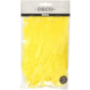Påskfjädrar i en gul färg som sitter i små buntar 3 st. som sitter ihop med en ståltråd. Fjädrarna är ca 11 till 17 cm höga och är tillverkade av dun.