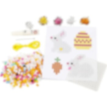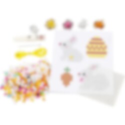 Pysselkit som innehåller tillbehör för att skapa roliga och kreativa påskpynt. Förpackningen inkluderar:
