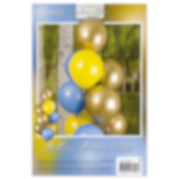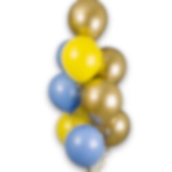 Skapa en festlig och elegant dekoration med denna ballongbukett i gult, blått och guld. Färgkombinationen gör den perfekt till studenten, men också till andra firanden där du vill skapa en lyxigare och mer iögonfallande känsla.