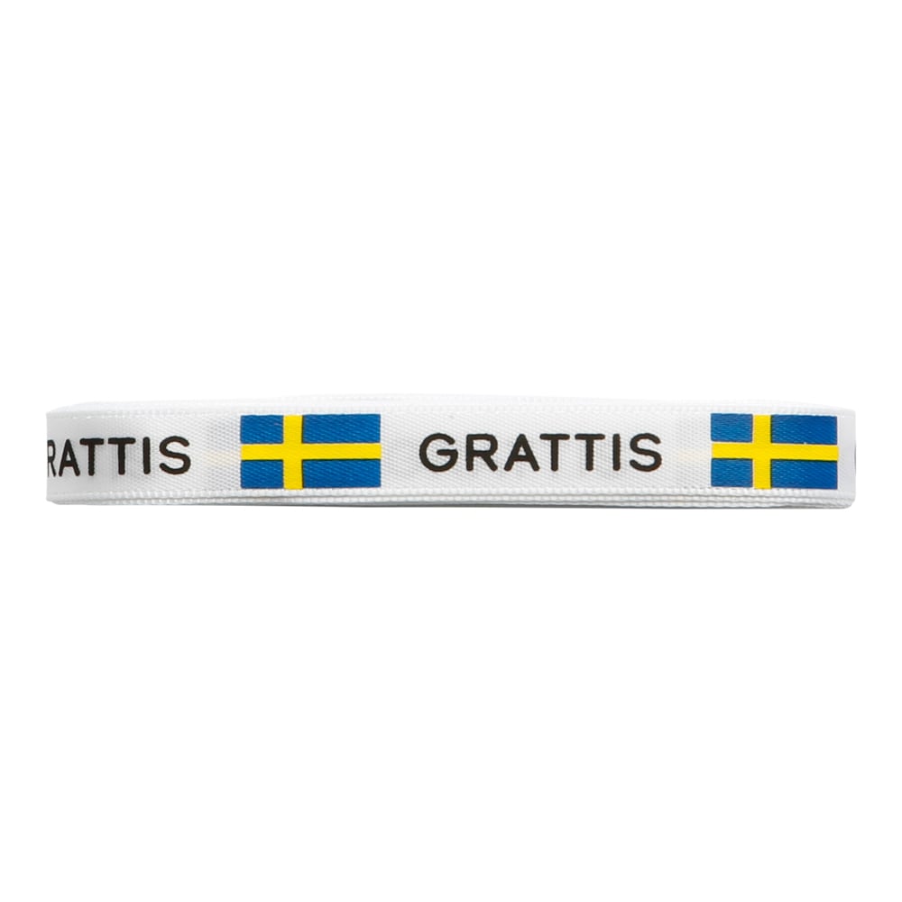 Sätt en festlig och klassisk studentkänsla på presenter, dekorationer och blomsterarrangemang med detta blågula band. Färgerna gör det extra passande till studenten, men bandet fungerar lika fint till andra firanden där du vill lyfta fram blått och gult på ett dekorativt sätt.