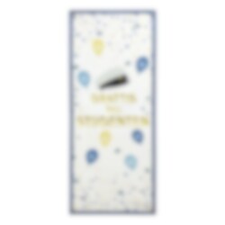 Skapa en festlig entré till studentfirandet med denna stora dörrdekoration med texten Grattis till Studenten. Motivet pryds av studentmössa, blå och gula ballonger, små svenska flaggor och konfetti mot en ljus bakgrund, vilket gör den till en fin dekoration både på dörren och som bakgrund vid studentbilder.