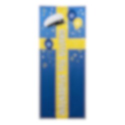 Ge studentfirandet en klassisk blågul inramning med denna höga dörrdekoration i svensk studentstil. Designen har inspirerats av den svenska flaggan och kombineras med studentmössa, ballonger och texten Grattis till Studenten, vilket gör den till en stämningsfull dekoration vid entrén eller som bakgrund till festliga foton.