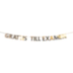 Skapa en festlig och elegant dekoration till examen med denna girlang med texten Grattis Till Examen. Den skimrande guldfärgen gör den till en fin detalj som passar perfekt till examensfirande, mottagning och andra högtidliga tillfällen där du vill skapa en extra festlig känsla.
