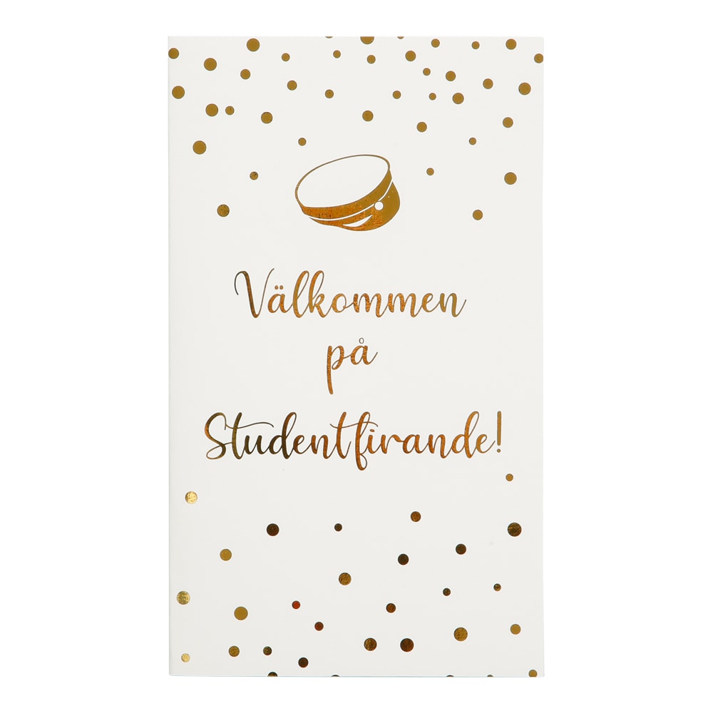 Kortet mäter 10 x 17 cm och levereras med kuvert, vilket gör det enkelt att ge bort direkt. En elegant liten studentsak som passar fint till studentmottagning, uppvaktning och andra festliga stunder under studentdagen.