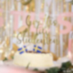 I kitet ingår 12 tallrikar, 12 muggar, 16 servetter, 1 girlang, 1 tårtdekoration och en ballongmix med 25 ballonger i blått och gult. Tallrikarna är 23 cm stora, muggarna rymmer 250 ml och servetterna mäter 33 x 33 cm. Girlangen är 360 cm lång och tårtdekorationen är 20 x 23 cm stor. Ett smidigt val för dig som vill få mycket klart på en gång och skapa en studentdukning som känns både festlig och välplanerad.