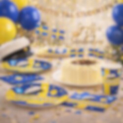 ✔️ Matchande dekorationer och ballonger i blått och gult