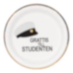 Duka upp till studentfirandet med dessa stilrena papptallrikar i vitt och guld. Med motiv av en studentmössa och texten "Grattis till Studenten" blir de en fin detalj på bordet och passar perfekt till studentmottagning, utspring och firande med familj och vänner.