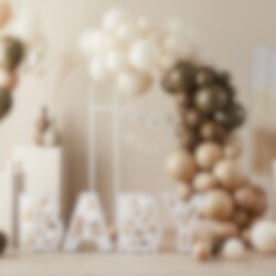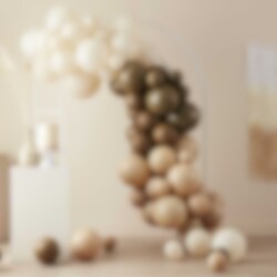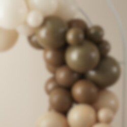 Lyxig ballongbåge i bruna- och neutrala toner som du själv bygger ihop. En verkligt imponerande dekoration som passar både till kalas, fester eller babyshower. Förpackningen innehåller hela 70 st. ballonger i olika storlekar och tillbehör. Ballongbågen är ca 5 meter lång.
