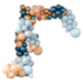 Tjusig ballongbåge i blågrön-, persika och guld chromefärgade toner som du själv bygger ihop. En verkligt imponerande dekoration som passar både till kalas, fester eller bröllop. Förpackningen innehåller hela 200 st. ballonger i olika storlekar och tillbehör. Ballongbågen är ca 12 meter lång.