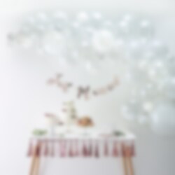 Tjusig ballongbåge i vitfärgade toner som du själv bygger ihop. En läcker dekoration som passar både till kalas, fester eller bröllop. Förpackningen innehåller hela 70 st. ballonger i olika storlekar och tillbehör. Ballongbågen är ca 4 meter lång.