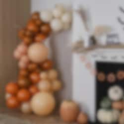Snygg lyxig ballongbåge i orangefärgade och neutrala toner som du bygger ihop själv.