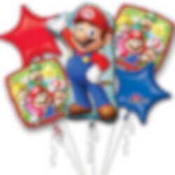 Tuff ballongbukett i temat Super Mario. Dekorera kalasrummet med denna för att skapa en mysig stämning. Förpackningen innehåller 5 st. ballonger. 1 st. supershaped formad som Mario (55 x 83 cm), 2 st. formade som stjärnor (48 cm) och 2 st. fyrkantiga ballonger (43 cm). Kan blåsas upp med vanlig luft eller helium.