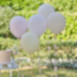 Komplettera din blommiga fest med dessa underbara ballonger i 5-pack. Utöver ballongerna så ingår 5 st. blommiga ballongsvansar.