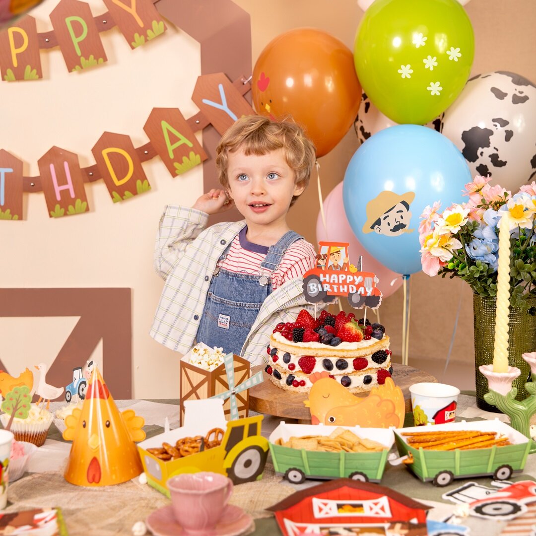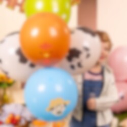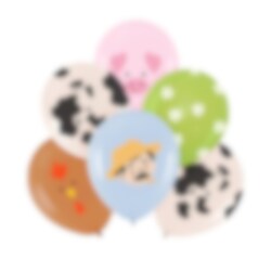 6 st. ballonger i bondgårdstema som blir en lekfull och färgstark dekoration till barnkalaset. Ballongerna har olika motiv som ko, gris, höna, blommor och bonde, vilket passar perfekt för att skapa en festlig stämning till ett kalas med bondgårdstema.