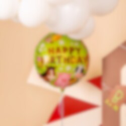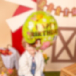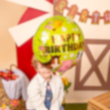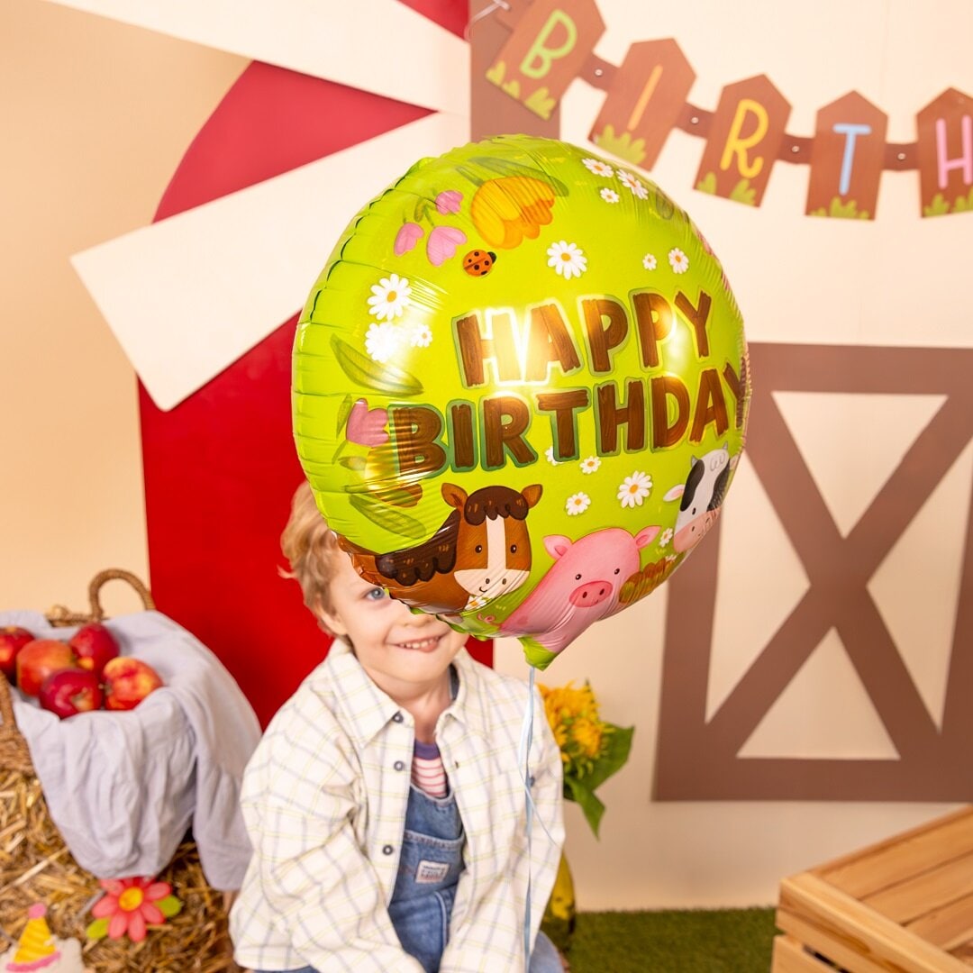 Skapa en lekfull och festlig stämning till barnkalaset med denna runda folieballong i bondgårdstema. Ballongen pryds av häst, gris och ko tillsammans med blommor och texten Happy Birthday, vilket gör den till en fin dekoration för ett kalas med bondgårdstema.
