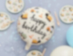 Snygg folieballong med häftiga fordonmotiv. Ballongen har texten Happy Birthday.