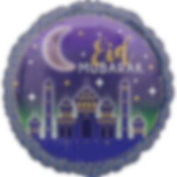 Se vår fina folieballong med Eid Mubarak-motiv! Ballongen blir 43 cm när den är uppblåst och kan blåsas upp med helium eller luft. Ballongen har en självslutande ventil och för att blåsa upp den med vanlig luft så behöver du en ballongpump, alternativt ett sugrör.