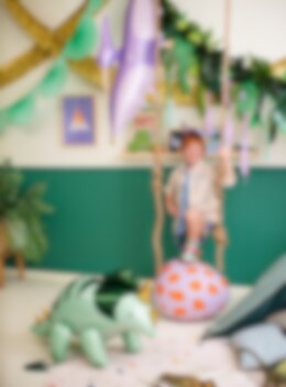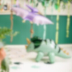 Folieballong som föreställer en pterodactyl i lila färg med guldfolierade detaljer. Ballongen är 120 x 62 cm stor uppblåst och kan blåsas upp med luft eller helium.