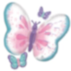 Tjusig folieballong som är formad som en färgglad fjäril. En vacker dekoration att dekorera rummet med inför kalaset.