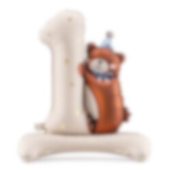 Denna fina fristående folieballong föreställer siffran 1, med en söt teddybjörn som omfamnar den. Perfekt för att skapa en festlig och charmig atmosfär till 1-årskalaset!