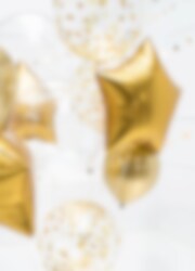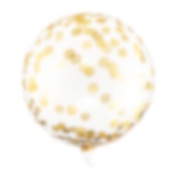 En stor transparent klotformad ballong fylld med glänsande guldkonfetti. Denna fina konfettiballong passar utmärkt till alla festliga tillfällen.