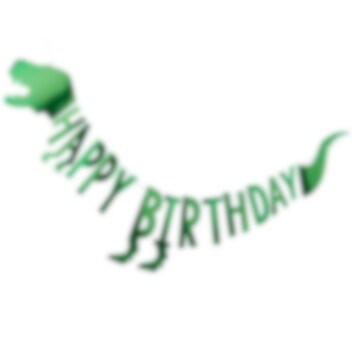 Tuff girlang i grönfolie med texten "Happy Birthday" och motiv av olika delar av dinosaurier. Häng upp denna på väggen när det vankas dinosauriekalas. Girlangen är ca 2 meter lång.