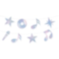 Skapa en glittrande bakgrund till kalaset med denna festliga girlang i discotema. Med stjärnor, noter, discokulor och mikrofoner i holografiskt skimmer blir den ett snyggt tillskott till både vägg, bord eller fotoområde.