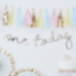 Fin girland i blank guldfolie med texten one today. En passande dekoration till 1-årskalaset. Girlangen är gjord av papp och är 150 cm lång.