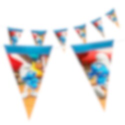 Vacker flaggirlang med motiv från Smurfarna. Girlangen är av plast och är 5 meter lång och blir en fin dekoration till ditt kalas.