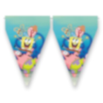 Färgsprakande flaggirlang av papp med magiska motiv från SvampBob. En perfekt dekoration för att förvandla kalasrummet till en förtrollande undervattensvärld, full av vänskap och glädje. Girlangen är cirka 3 meter lång och varje vimpel är cirka 24,5 cm hög.