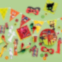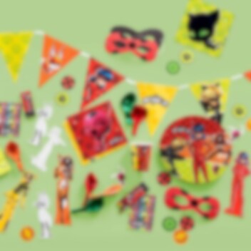 Bordsdekorationer med sex olika pappfigurer från Miraculous Ladybug och en bakgrundsbild av Paris. I förpackningen ingår även lite större konfetti. Figurerna är ca 23 cm höga, bakgrundsbilden ca 35 cm och allt är tillverkat av FSC-märkt miljövänlig papp.