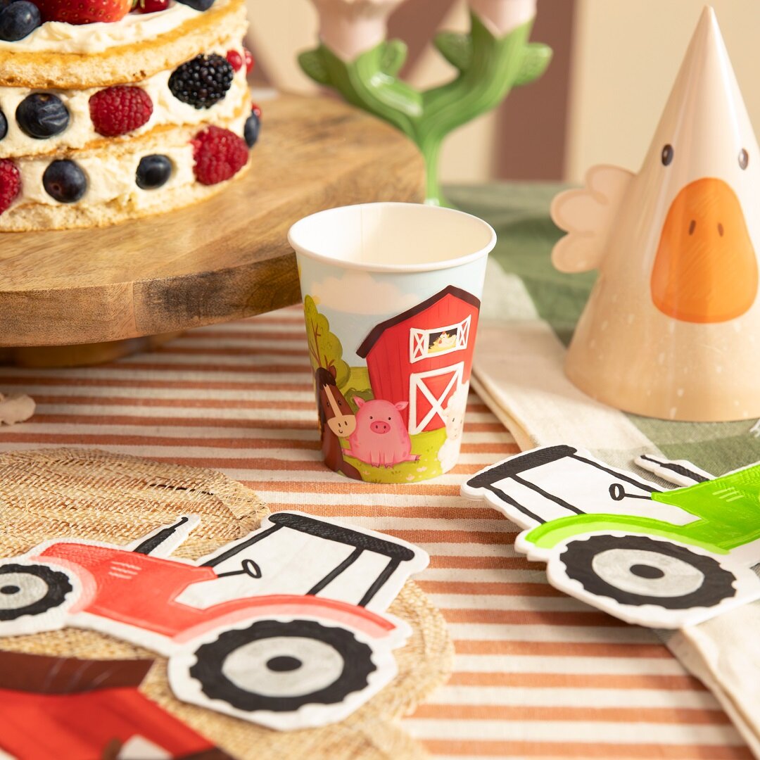 6 st. pappmuggar i bondgårdstema som gör dukningen extra lekfull till barnkalaset. Muggarna pryds av gulliga bondgårdsdjur, en röd lada och ett lantligt motiv som passar perfekt till ett kalas med bondgårdstema.