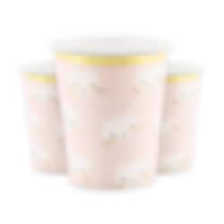 6 st. pappmuggar i en ljusrosa färg med guldfolierade kanter och med motiv av söta små katthuvuden med guldfolierade detaljer. Snygga att ha med i dukningen inför kattkalaset. Muggarna är ca 9 cm höga och rymmer ca 220 ml.