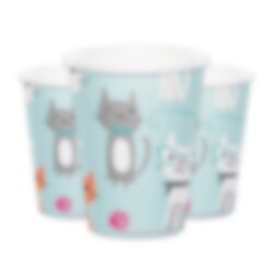 8 st. pappmuggar med motiv av söta katter på en mintgrön bakgrund. Muggarna är ca 10 cm höga och rymmer ca 266 ml.