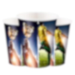 8 st. pappmuggar med snyggt fotbollsmotiv. Muggarna är 10 cm höga och rymmer 250 ml.