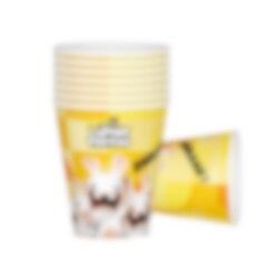 8 st. pappmuggar med fint Rabbids motiv. Muggarna är 10 cm höga och rymmer 250 ml.