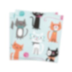16 st. små mintgröna servetter med motiv av gulliga katter. Ett självklart tillbehör att ha med till kalaset med kattema. Servetterna är 2-lagers och är ca 25 x 25 cm stora utvikta.