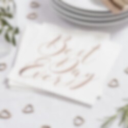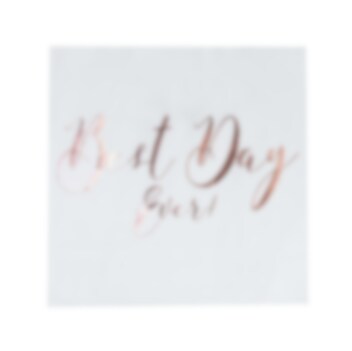 20 st. fina vita servetter med texten "Best Day Ever" i roséguldfolie på ena sidan. Ha dessa härliga servetter till babyshowern, kalaset eller festen. Servetterna är 2-lagers och är ca 33 x 33 cm stora.